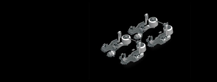 La charge verticale roule à 100% sur les ressorts pneumatiques, tandis que la conception réduit le couple de l'essieu et permet aux pneus de maintenir le contact avec la chaussée pendant le freinage. Un saut de roue réduit améliore également la traction.